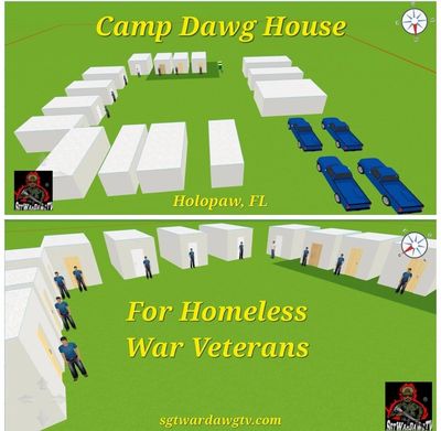 Camp Dawg House™ was established in 2019 in Holopaw, FL. THIS WILL SOON BE a 501(c)(3) tax-exempt non-profit organization that provides emergency, temporary, and long-term housing to Homeless War Veterans in need, at risk of Homelessness, or transitioning out of Homelessness. At Camp Dawg House™ our non-profit organization is in the process of creating indefinite-term Off-Grid Shelters for Homeless War Veterans in the Central FL area. Camp Dawg House™ is a non-profit owned by Sgt WarDawg TV®.